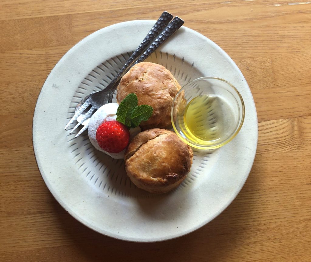 潮の粒をのせた全粒粉のスコーン 塩はちみつ添え