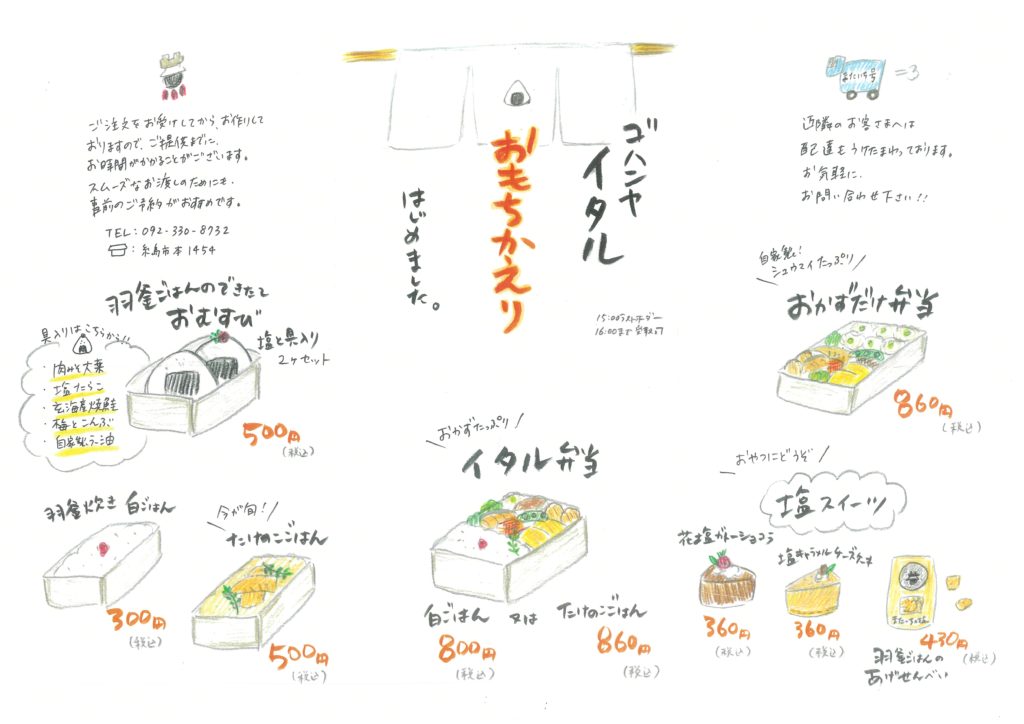 ゴハンヤ イタルにて承ります。