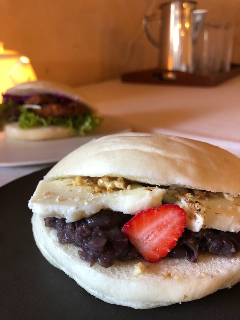 ◎ 自家製バターと塩小豆のあんバターサンド粒塩ぱらぱら 400円 (税別)