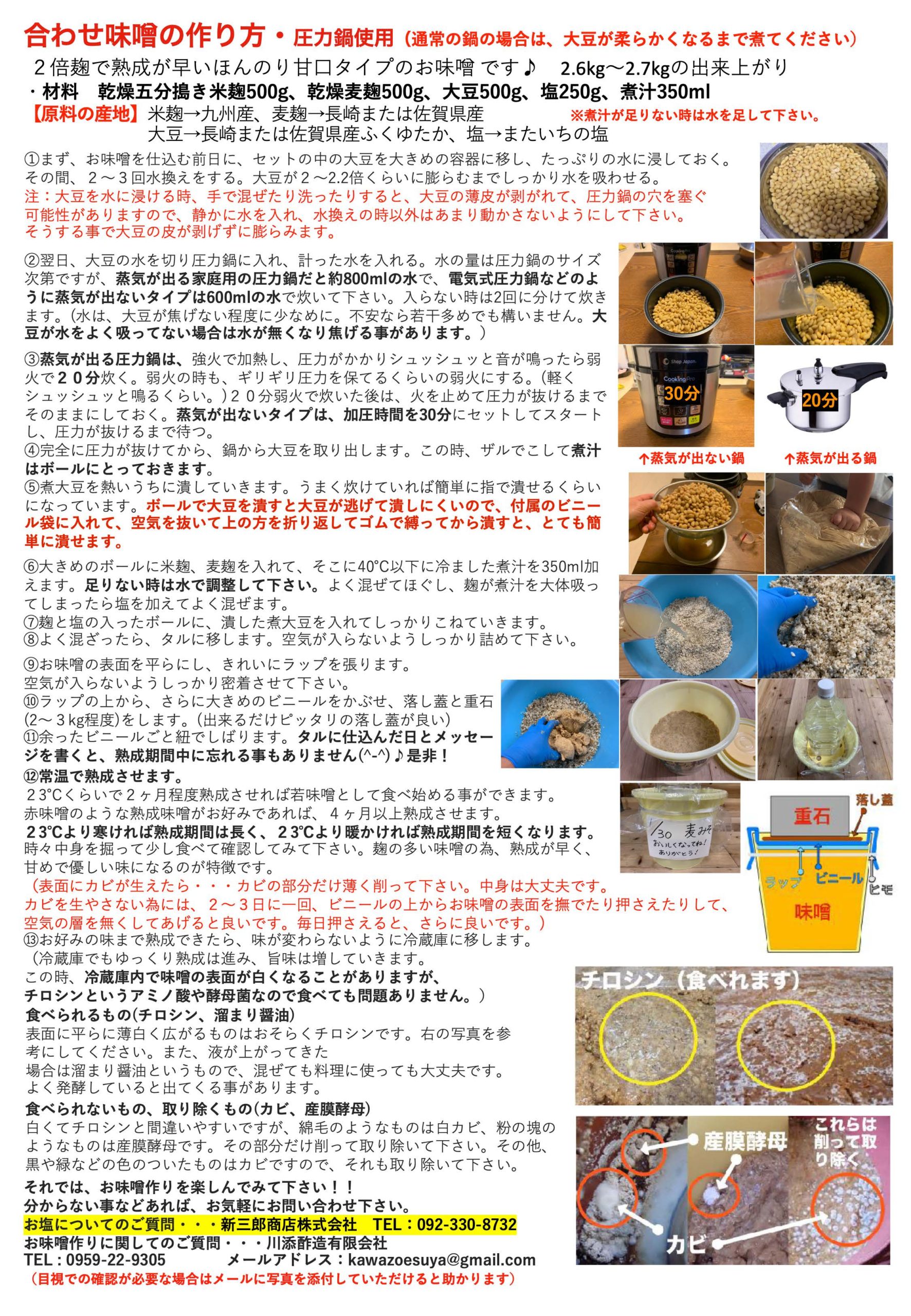 合わせ味噌手作りキットをお買い上げのお客様へ【レシピ画像あり】 新三郎商店 2020年10月26日 日頃より新三郎商店をご愛顧いただきありがとうございます。 この度、新三郎商店にて販売しております「味噌づくりキット」にレシピが同包されていない事が分かりました。 誠に申し訳ございません。 レシピ画像を掲載いたしましたので こちらからご利用くださいませ。↓↓↓ その他 ご不明な点等ございましたらお問い合わせくださいませ。