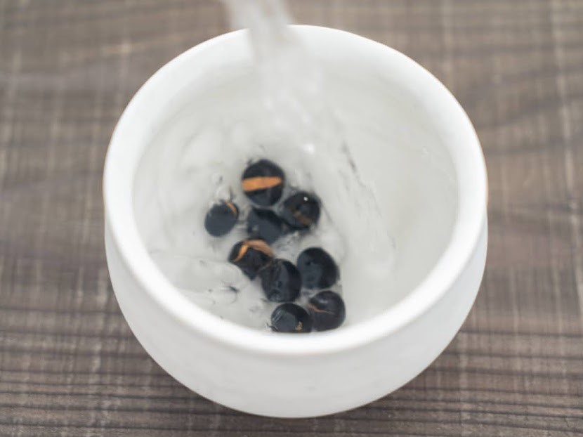 色の薄いコップで、黒豆の色が出てくる様子も楽しんでみてくださいね。