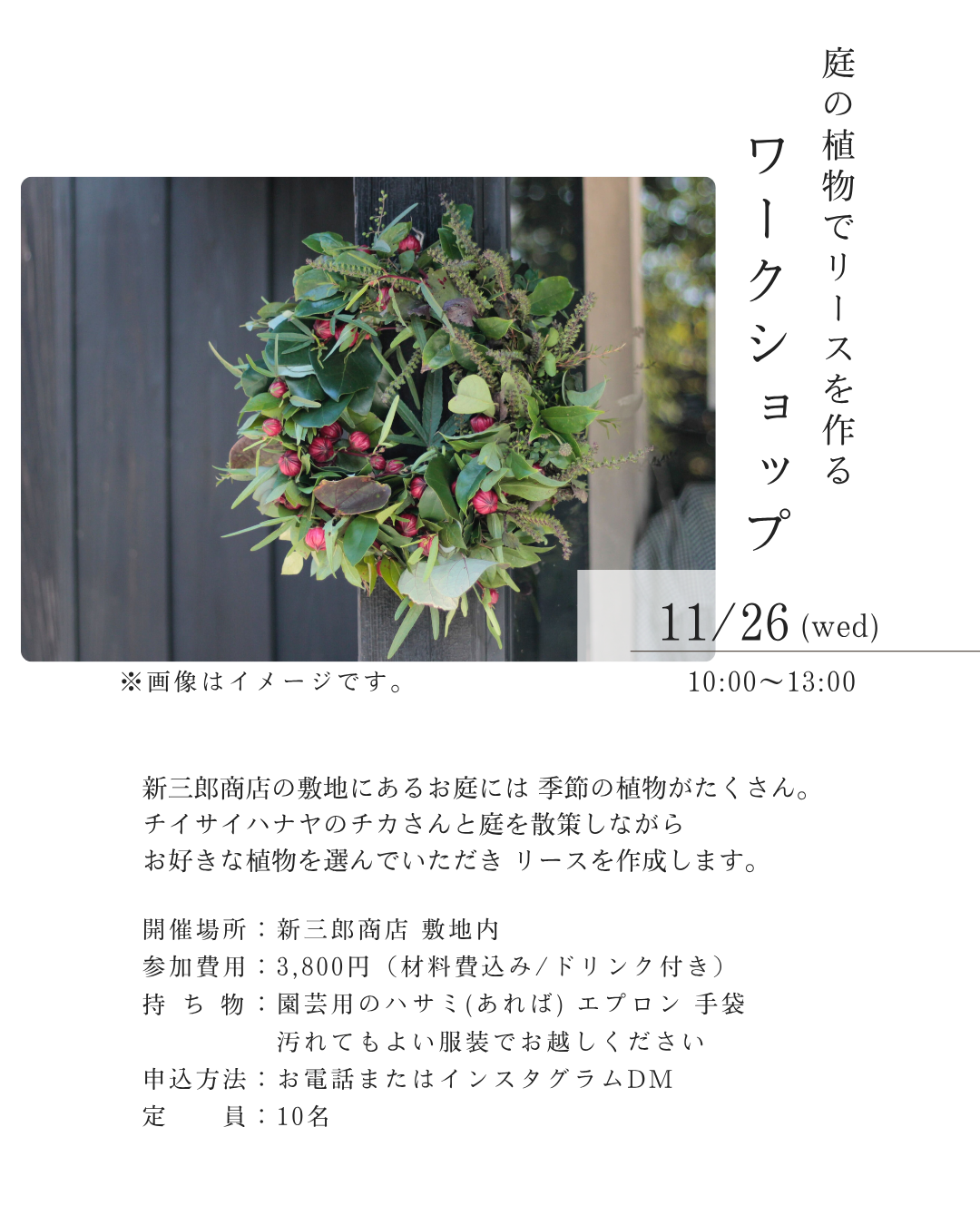 新三郎商店の庭でつくる、自分だけのリースづくりワークショップ