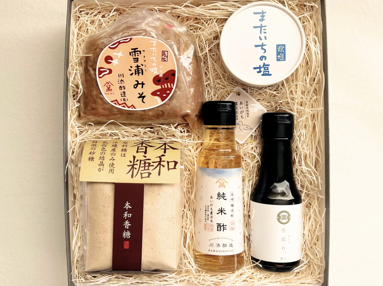 味噌は、雪浦みそ(川添酢造有限会社)、塩守の生味噌(若竹醤油有限会社)いづれかをお選びいただけます。